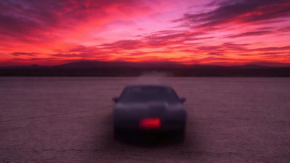Aber dann. Aus dem Dunkel, an glühendem Horizont – es regt sich etwas. Aufbrandende Musik. Und dann die Worte, mit sonorer Stimme aus dem Off, ja geradezu aus dem Himmel: „Er kommt.“ In schwarzem Wagen mit rotem Scanner-Auge, das alles sieht. Der Deus in der Maschine, der alles weiß. Überlegenheit durch Technik. Auf den Flügeln des Wahren und Richtigen fährt er in eine Welt des Falschen.